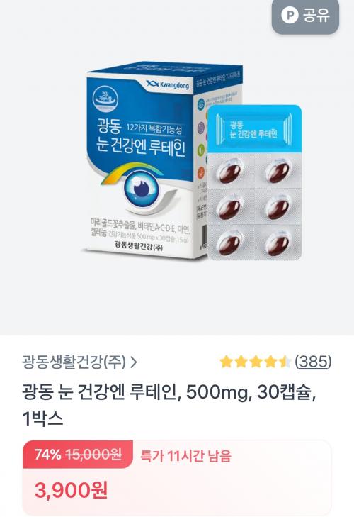 [토스] 광동 눈 건강엔 루테인 15g 30캡슐 (3,900원/만원이상무료) > 국내핫딜