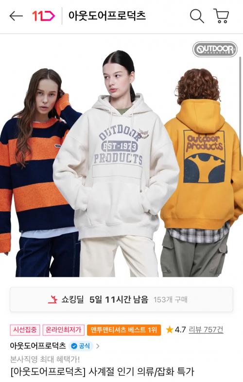 [11번가] 아웃도어프로덕츠 F/W ~80% OFF (17,900원~/무료) > 국내핫딜