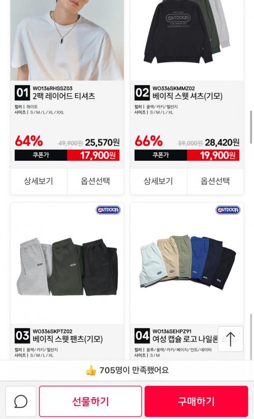 맨투맨, 트레이닝팬츠, 후드티, 니트 등 다양하게 할인하네요