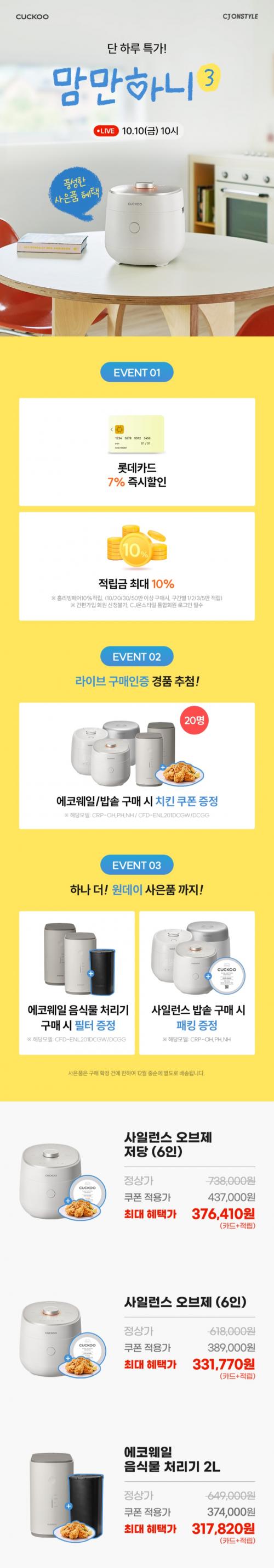 CJ에서 쿠쿠 밥솥, 음식물처리기 행사하는데 혜택 괜찮길래 공유합니다