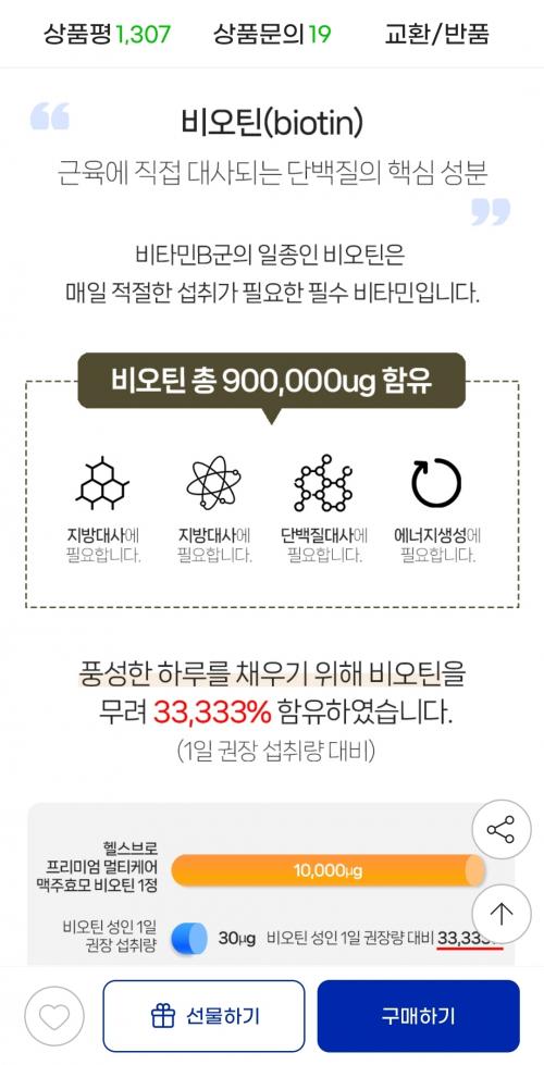 비오틴이 1일권장섭취량보다 많이 들어가있어서