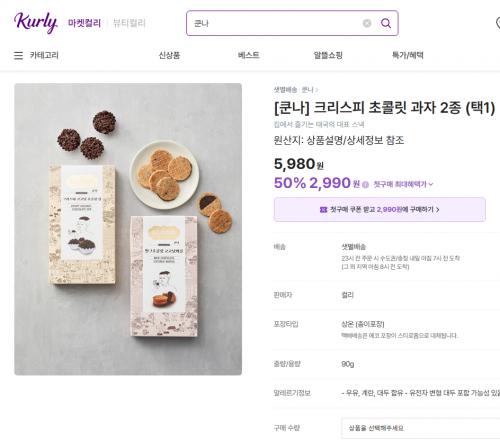 [마켓컬리] 쿤나 코코넛와플/초컬릿 컵 2종 택1 (5980원/배송비3000원)