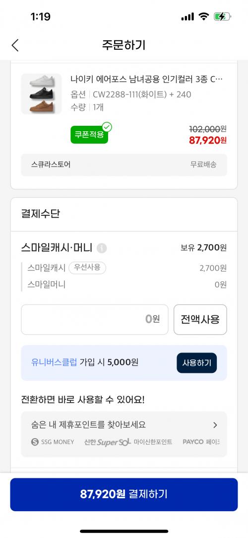 [지마켓] 나이키 에어포스 인기컬러 3종 (87,920원/무료)