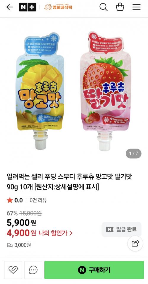 망고맛이랑 딸기맛 두가지 있는데 냉장고에 6시간만 넣어두면 젤리처럼 쫀뜩하고