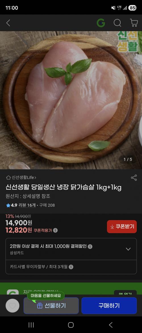 [지마켓] 냉장 닭가슴살 1kg+ 1kg 12820원 무배 > 국내핫딜