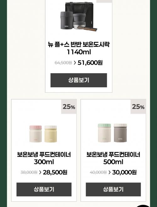 보온도시락류 현재 최대 25% 할인 중이며, 구매 시 모바일 커피 쿠폰도 증정된다고 합니다ㅎ