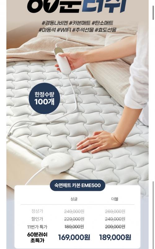 [11번가] 60분러시 경동나비엔 카본매트 EME500 싱글/더블 wifi 앱연동 (169,000원/무료)