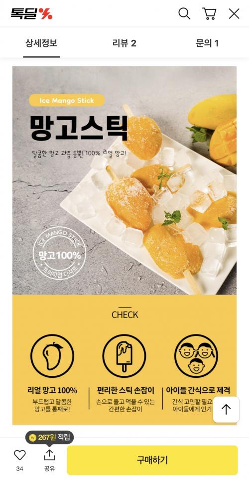 [톡딜] 리얼 망고 아이스바 60g 40개 (19,900원/3,500원) > 국내핫딜