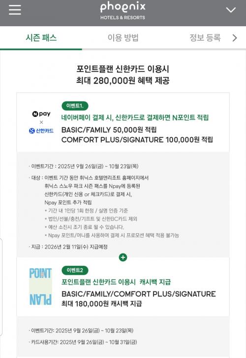 작년에도 휘닉스 시즌권을 샀지만 올해는 구성이 확실히 좋아졌습니다