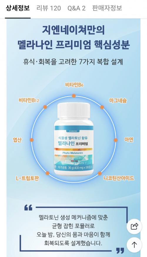 식물성 멜라토닌 2mg + L-테아닌 + L-트립토판 배합에