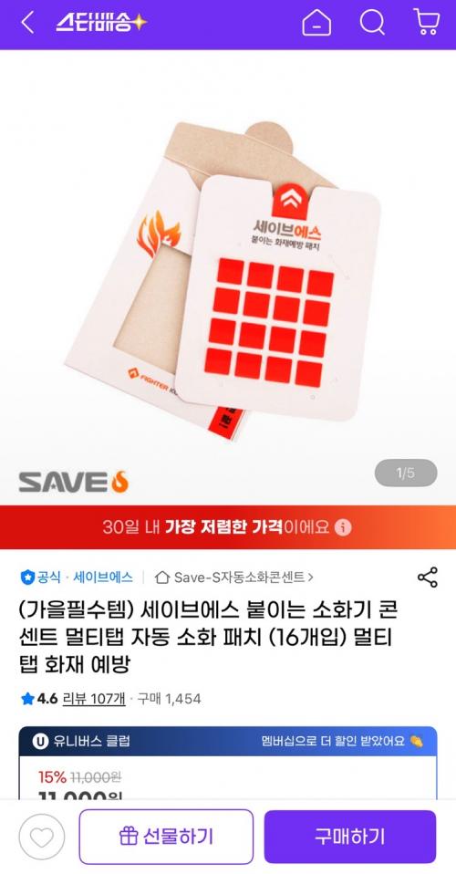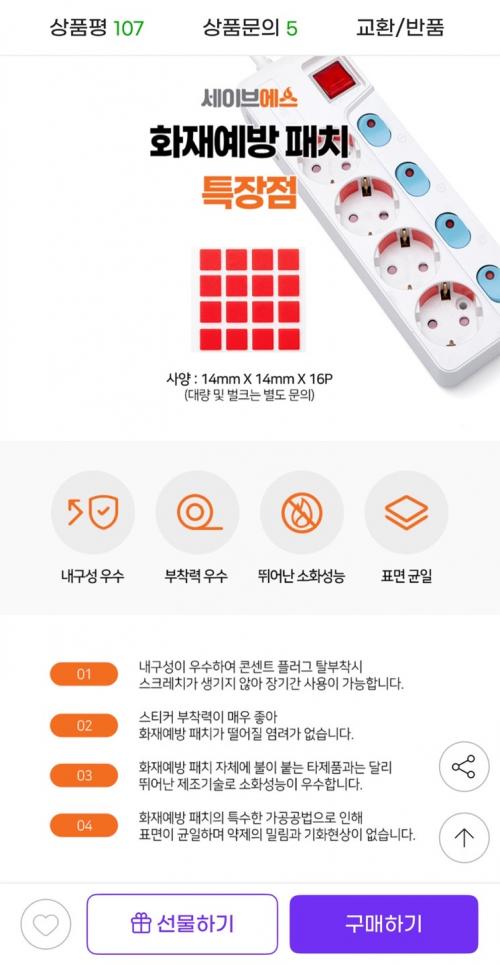 [지마켓] 세이브에스 전기화재예방 콘센트/멀티탭 자동소화패치 (9,900원/3,000원) > 국내핫딜