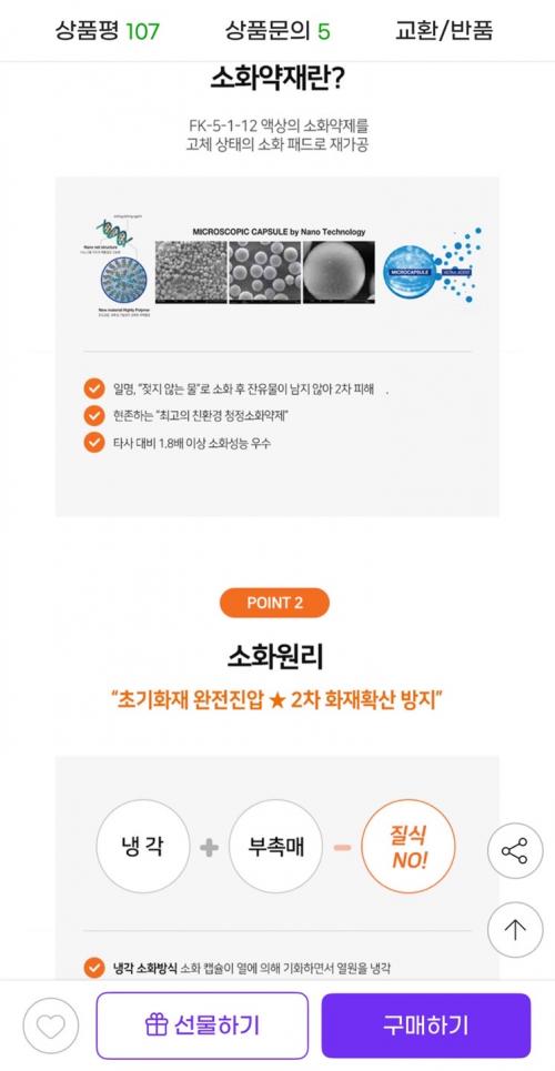안쪽 벽면에 붙이기만 하면 화재 감지되면 소화약제 터져서 자동화재진압 됩니다