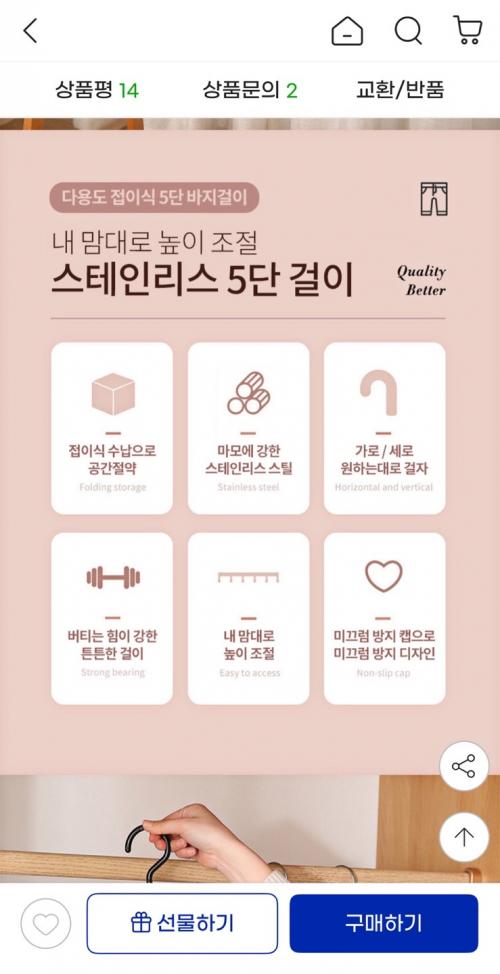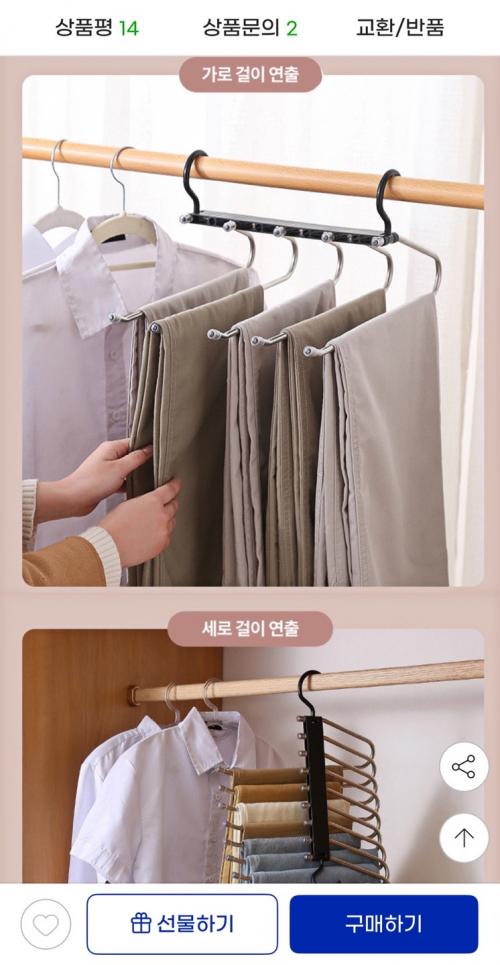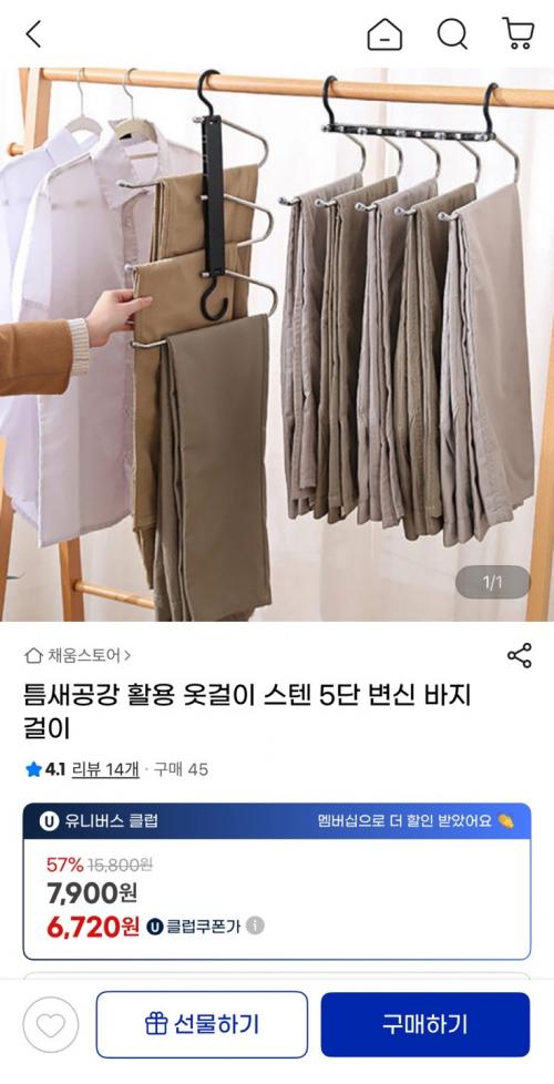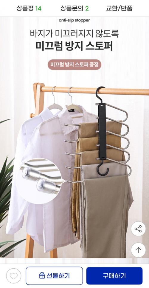 [지마켓] 틈새공간 활용 스텐 5단 변신 바지걸이 옷걸이 (7,900원/무배)