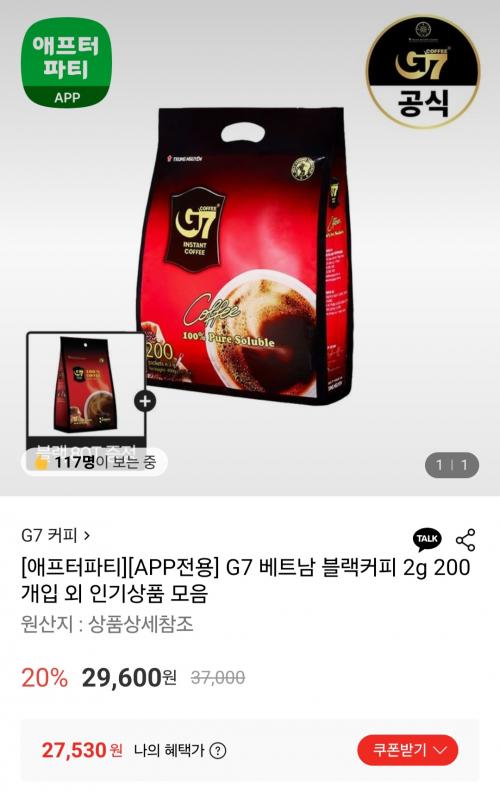 [롯데온] G7 커피 280T (27,530원/무배) > 국내핫딜