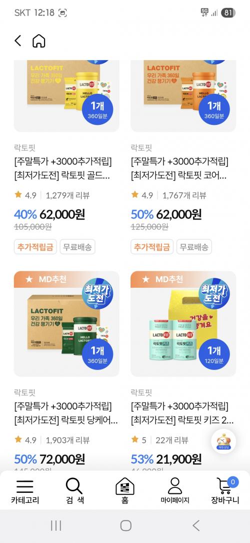 골드,코어 각 62,000원 / 당케어 72,000원이고