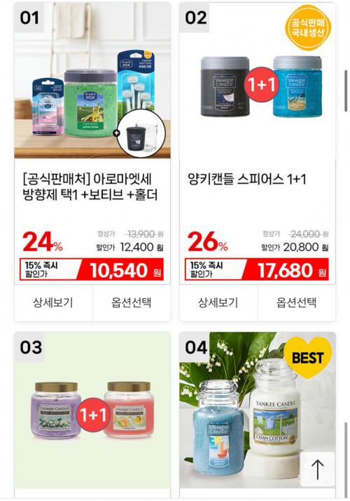 [11번가] 양키캔들 1+1 / 차량용방향제 / 입문자용 풀세트 외 (15,390원/무료)