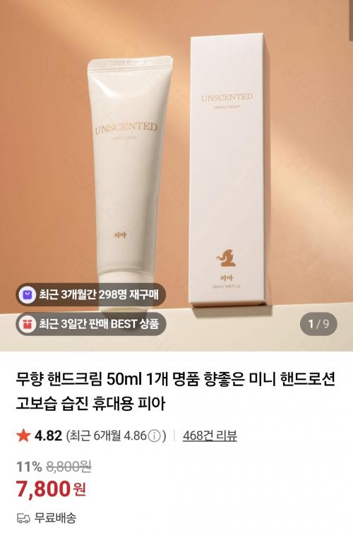 [네이버] 국산 피아 핸드크림50ml (7,800원/무배) > 국내핫딜