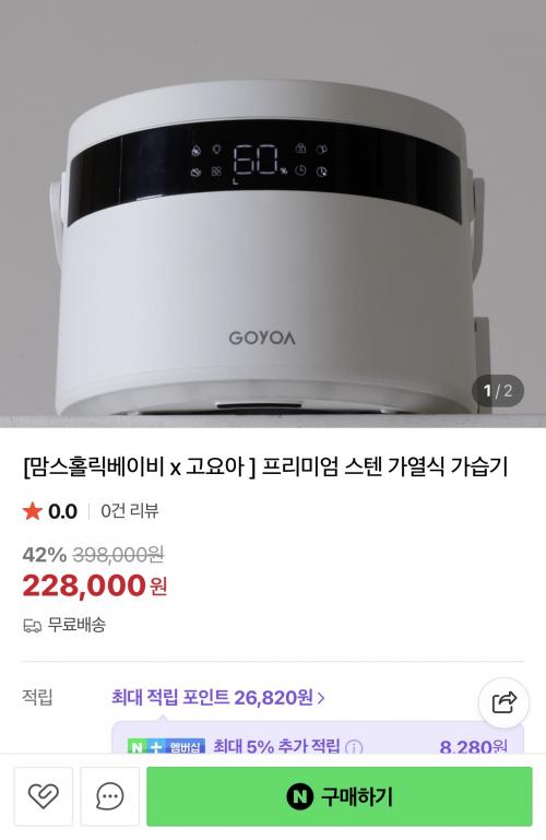 고요아 가습기 공구 행사로 22만원대에 구매 가능해요