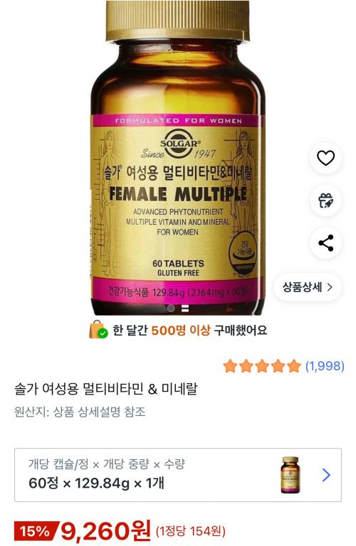 [쿠팡] 솔가 여성용 멀티비타민 미네랄 2개월분 (9,260원/무료) > 국내핫딜