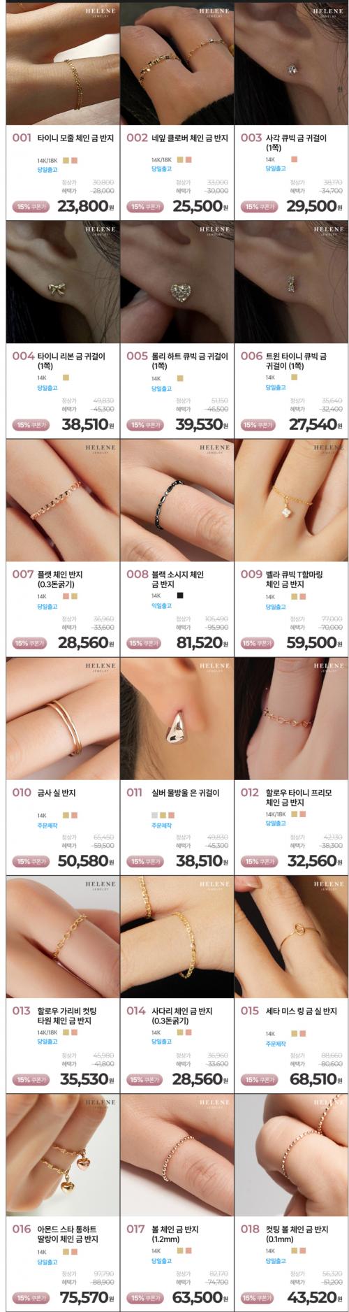 [옥션] 14K/18K 엘렌쥬얼리 36종 할인 (35,520원/무배) > 국내핫딜