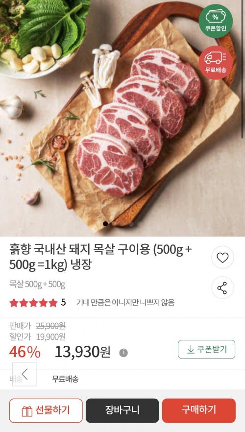 [우체국] 국내산 목살 1kg (13,930원/무료배송) > 국내핫딜