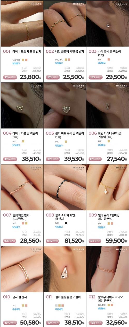 [지마켓] 엘린쥬얼리 14K/18K 반지 귀걸이 36종 모음전 (23,800원 등 다양/무배) > 국내핫딜