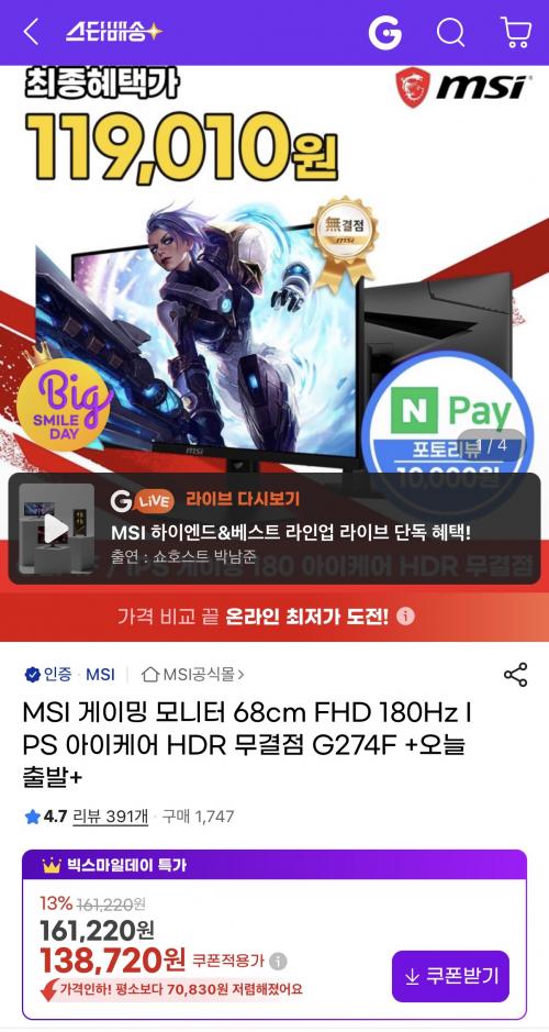 경기용이라 성능 최고고, 사용기 1만 네페있어서 최종 11만원대로 가져갈 수 있어요!