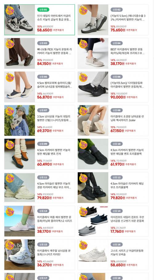 [쇼핑몰] [지마켓] 아키클래식 인기 데일리 어반트래커 어글리슈즈 키높이 굽높이 통굽 운동화 스니커즈 모음전 (58650원/무배)상품명과 구성품 (가격/배송비)
