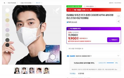 [지마켓] 다이아핏 KF94 새부리형 마스크 100매입 (9,900원부터/무배) > 국내핫딜