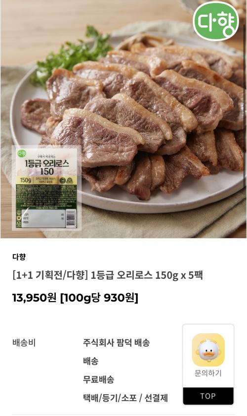 [오리덕몰] 오리덕몰 1등급 오리로스 150g×10팩 (13,950원/무료)