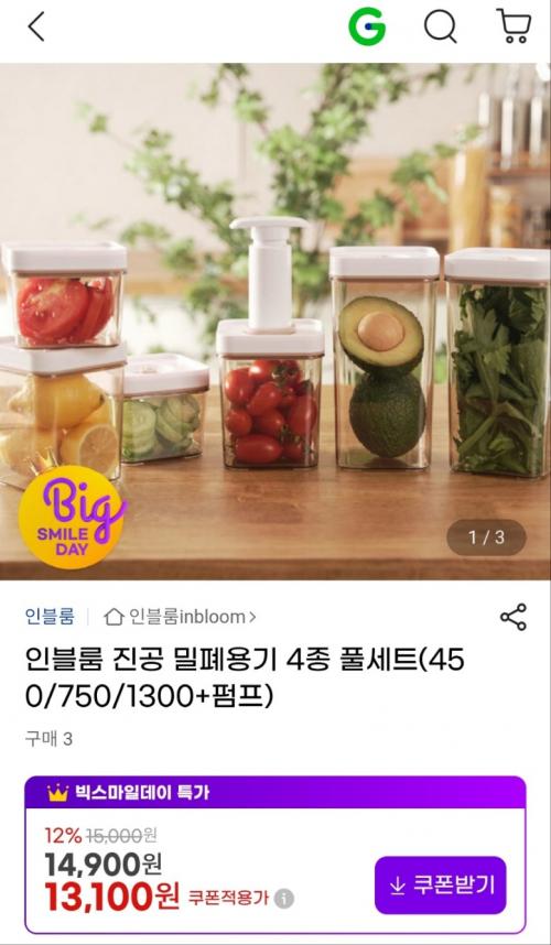 진공 밀폐용기 4종 풀세트에 펌프까지 제공이라 저렴하네요
