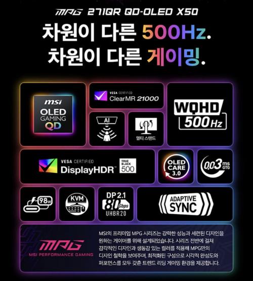 500hz 초고주사율에 27인치 최상급 QD-OLED 모니터 신상 입니다