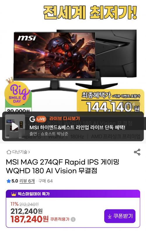 27인치 전세계 최저가 강력 어필 하는 MSI 모니터 딜입니다