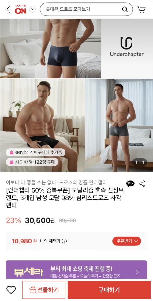 [롯데온]모달리즘 3개입 남성 모달 98% 심리스드로즈 사각팬티 (10,980원/무료) > 국내핫딜