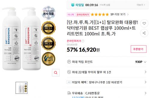 11번가에서 탈모샴푸 + 탈모 트리트먼트 세트 할인중이네요