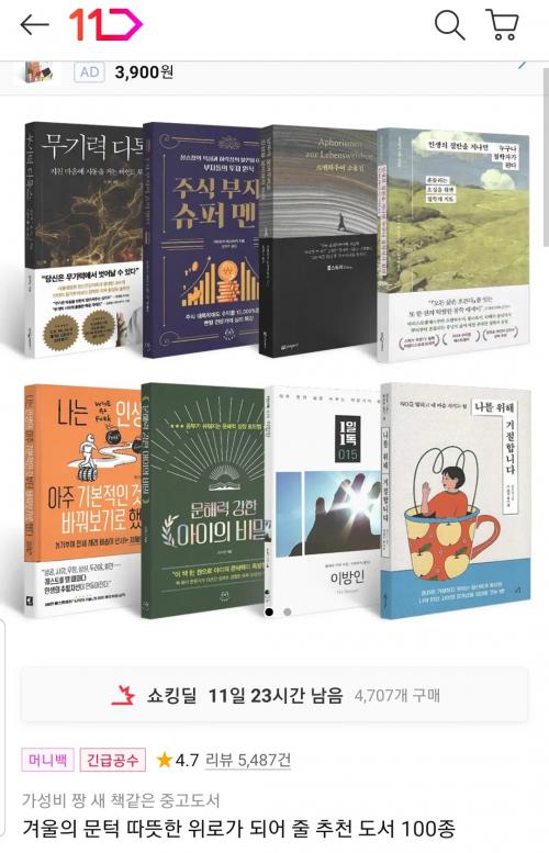 아이용 그림책부터 종교서적 레시피북 등등 다양한 도서 100종인데 취향에 맞으시는걸로 고르심 됩니다.