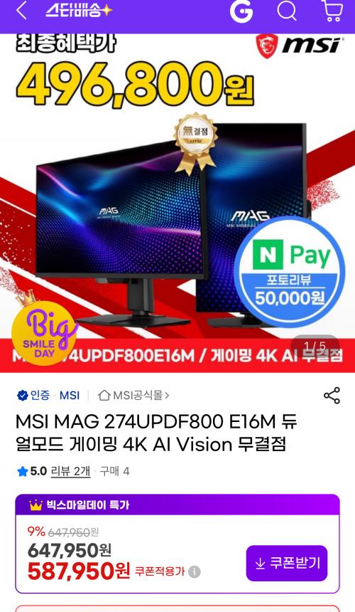 어댑싱크 있고 HDR400이라 화질 좋아요 사용기 5만 최종 49 ㄱㄱ
