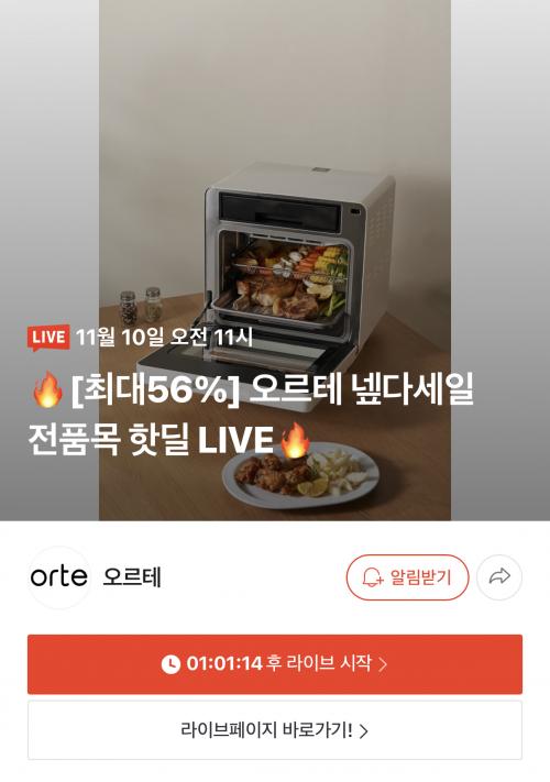 [네이버쇼핑] 오르테 에어프라이어 오전 11시 LIVE 진행 (226,000원/무료)