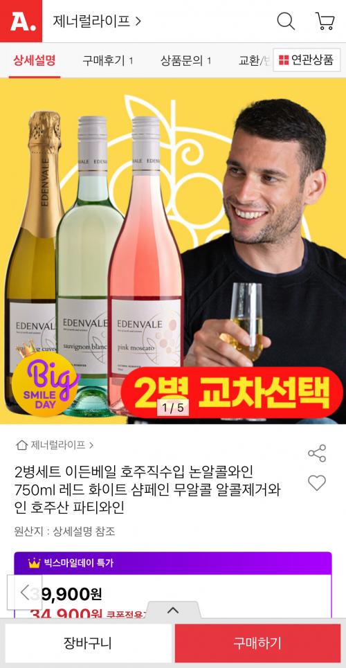 [옥션] 이든베일 호주직수입 무알콜와인 750ml 2병 교차선택 (34,900원/무료) > 국내핫딜
