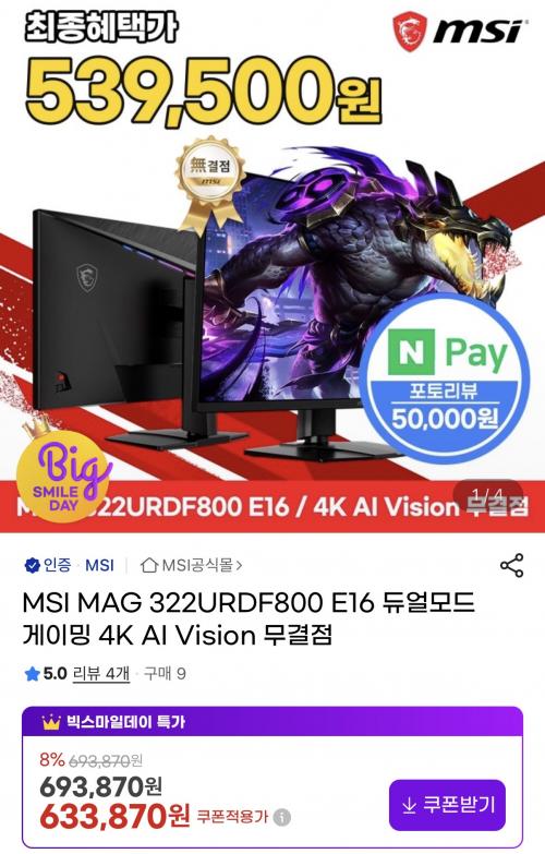 후기 이벤트 중이라 작성 시 5만원 네페주는데