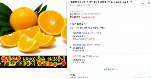블프할인으로 제주 황금향 가격대 좋게떳네요