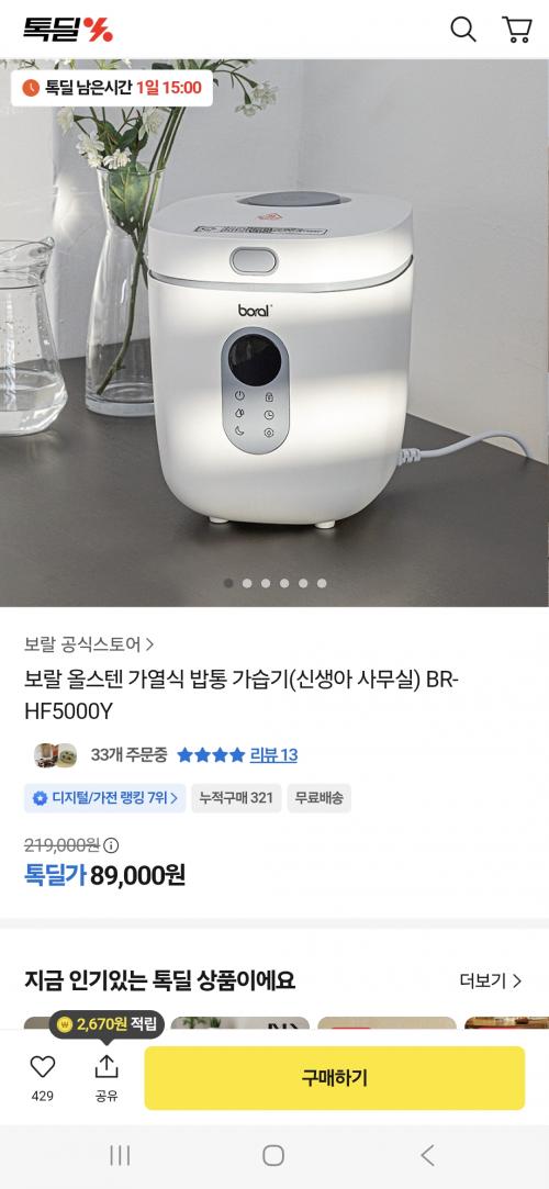 [카카오] 올스텐 가열식 밥통 가습기 3.5리터 (89,000원/무료) > 국내핫딜