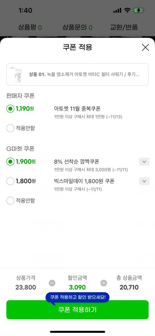 [g마켓] 녹물 염소제거 필터 아토젯 샤워헤드 (20,710원/무료)