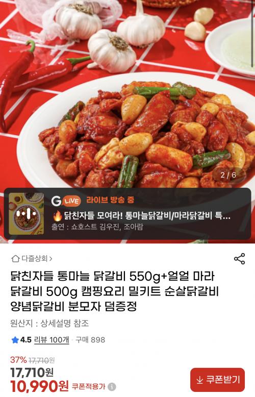 [지마켓] 닭갈비 500g×2팩 (10,990원/무료)