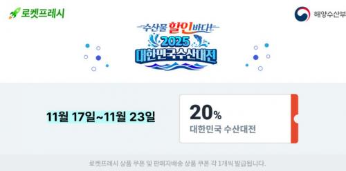 [쿠팡] 2025 대한민국수산대전 (11.17~11.23) 파격할인행사 진행중(20% 할인쿠폰증정)