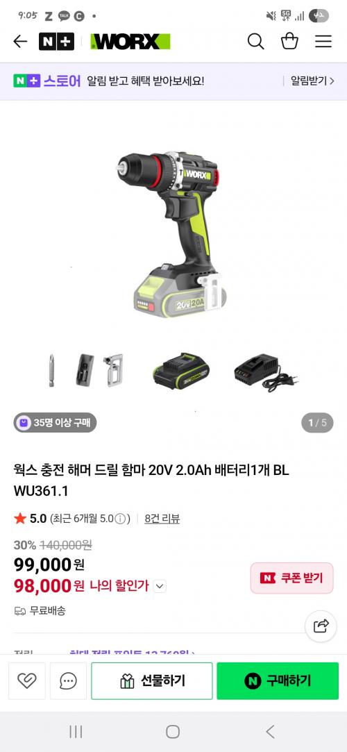무료배송에 1천원 할인쿠폰까지 쓰면 98000원이에요