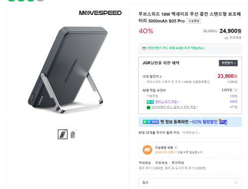 [네이버] 무브스피드 맥세이프 스탠드형 보조배터리 5,000mAh (23,900원/무료)