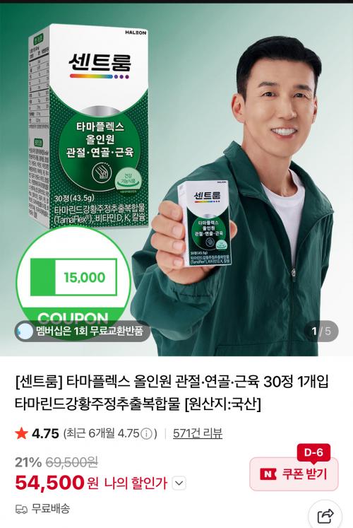 [네이버] 센트룸 타마플렉스 올인원 관절·연골·근육 30정 1개 (54,500원/무료) > 국내핫딜