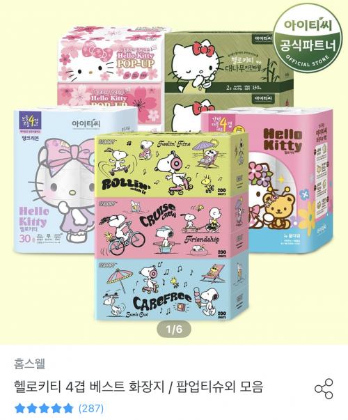 [오늘의집] 헬로키티 플라워 4겹 25m × 24롤 2팩 (24,340원/무료)