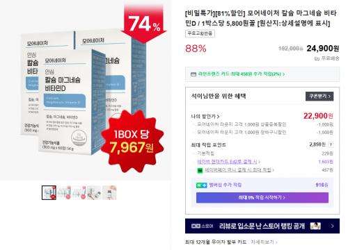 [네이버] 칼슘 마그네슘 비타민D 3박스 22,900원/무배
